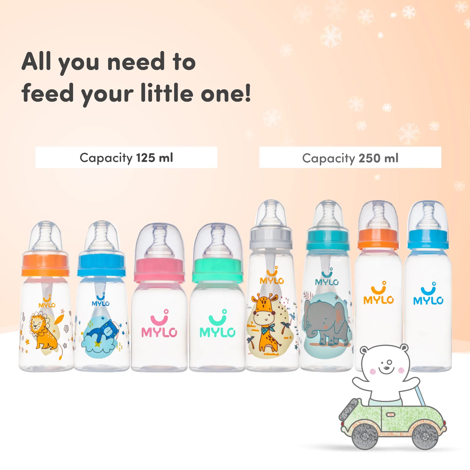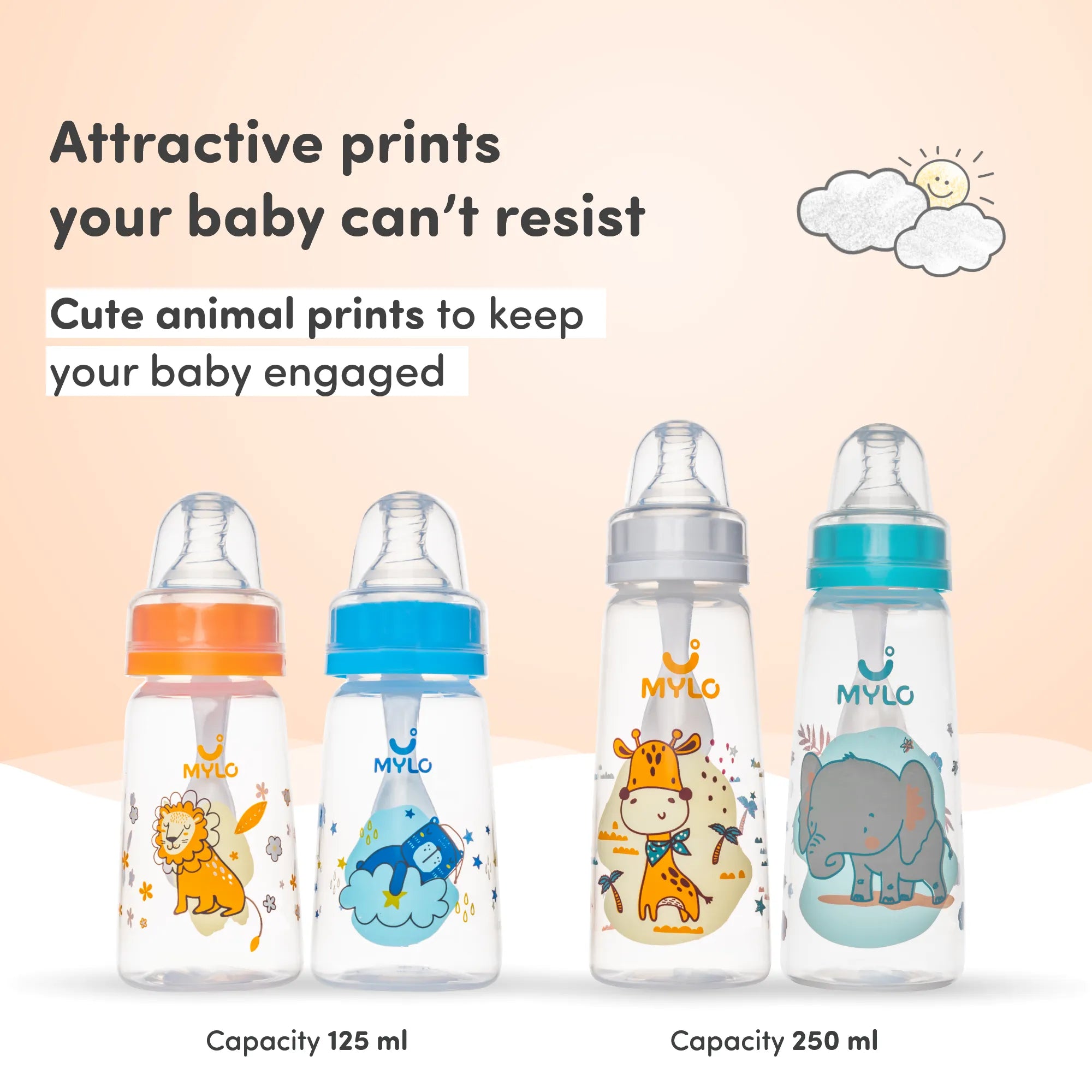 2-in-1 Baby Feeding Bottle - Lion & Giraffe 125ml & 250ml (Pack of 2)