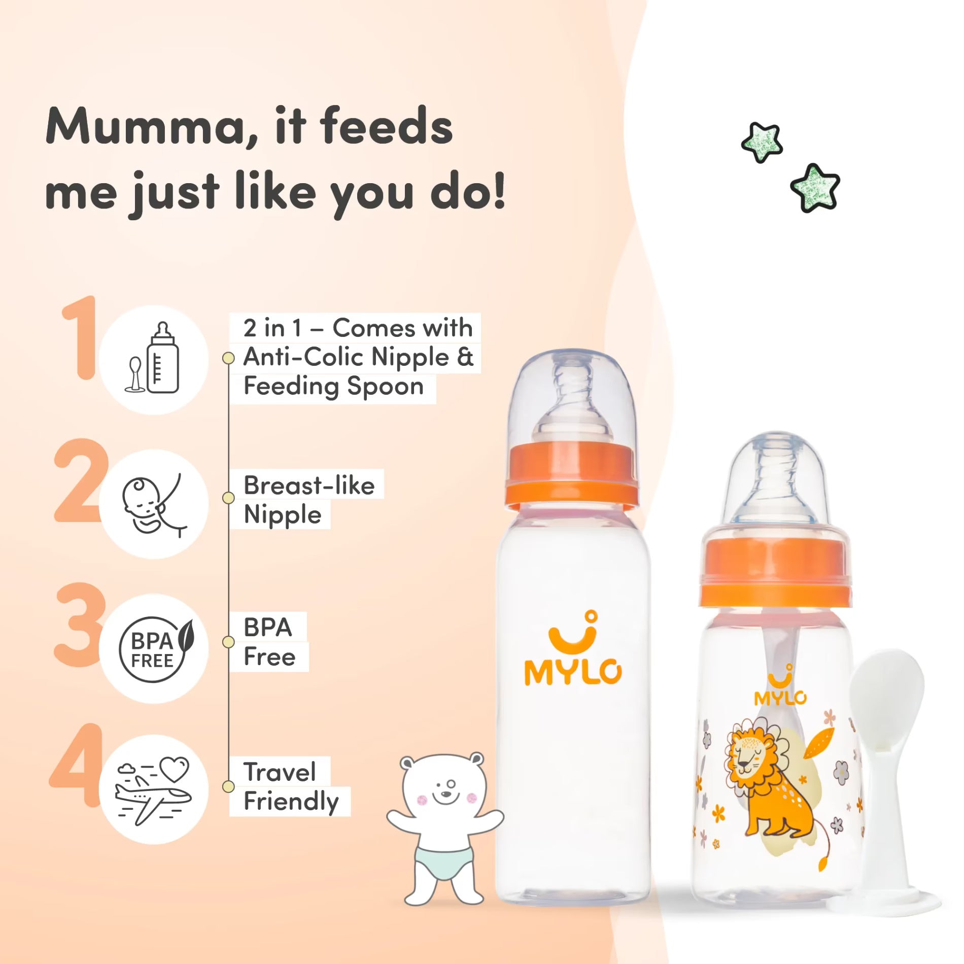 2-in-1 Baby Feeding Bottle - Lion & Orange 125ml & 250ml (Pack of 2)