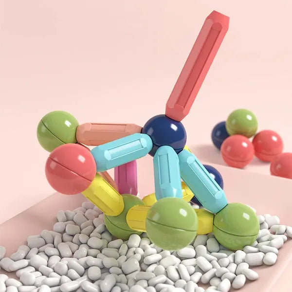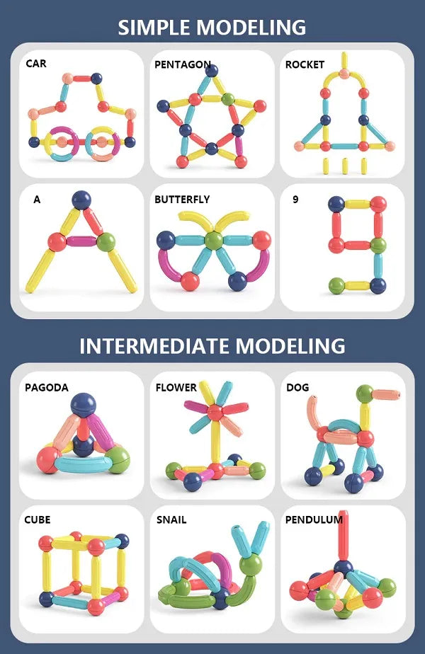 With this set of magnets with sticks and balls, the little ones with you, you can connect whole hours of fun and you can experience together the joy of transforming imagination into reality.