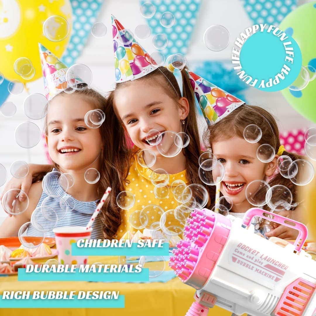 • 32 holes Gatling bubble machine can output hundreds of bubbles per min, kids would be obsessed with bubbles world.