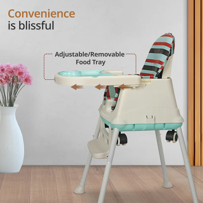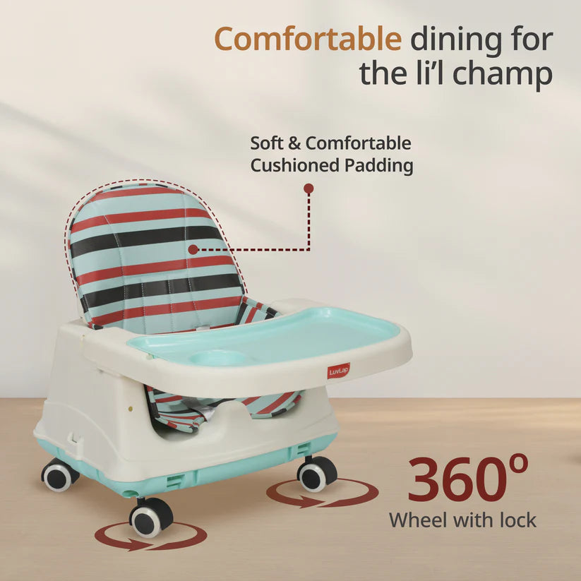 4In1 High Chair For Baby/Kids, Toddler Feeding Booster Seat With Wheels, 3 Height Adjustments, With Cushion, 6 Month To 3 Years, Portable (Blue)