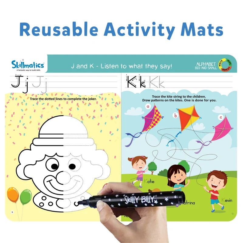 Recognizing letters and being able to write them correctly is an important learning milestone. Skillmatics Alphabet has been designed to make learning the alphabet an engaging and pleasing experience for a young child. Our fun activities help children build their vocabulary while also learning multiple new concepts! Further our Write and Wipe format allows children to practice writing the alphabet again and again - and yet again!
