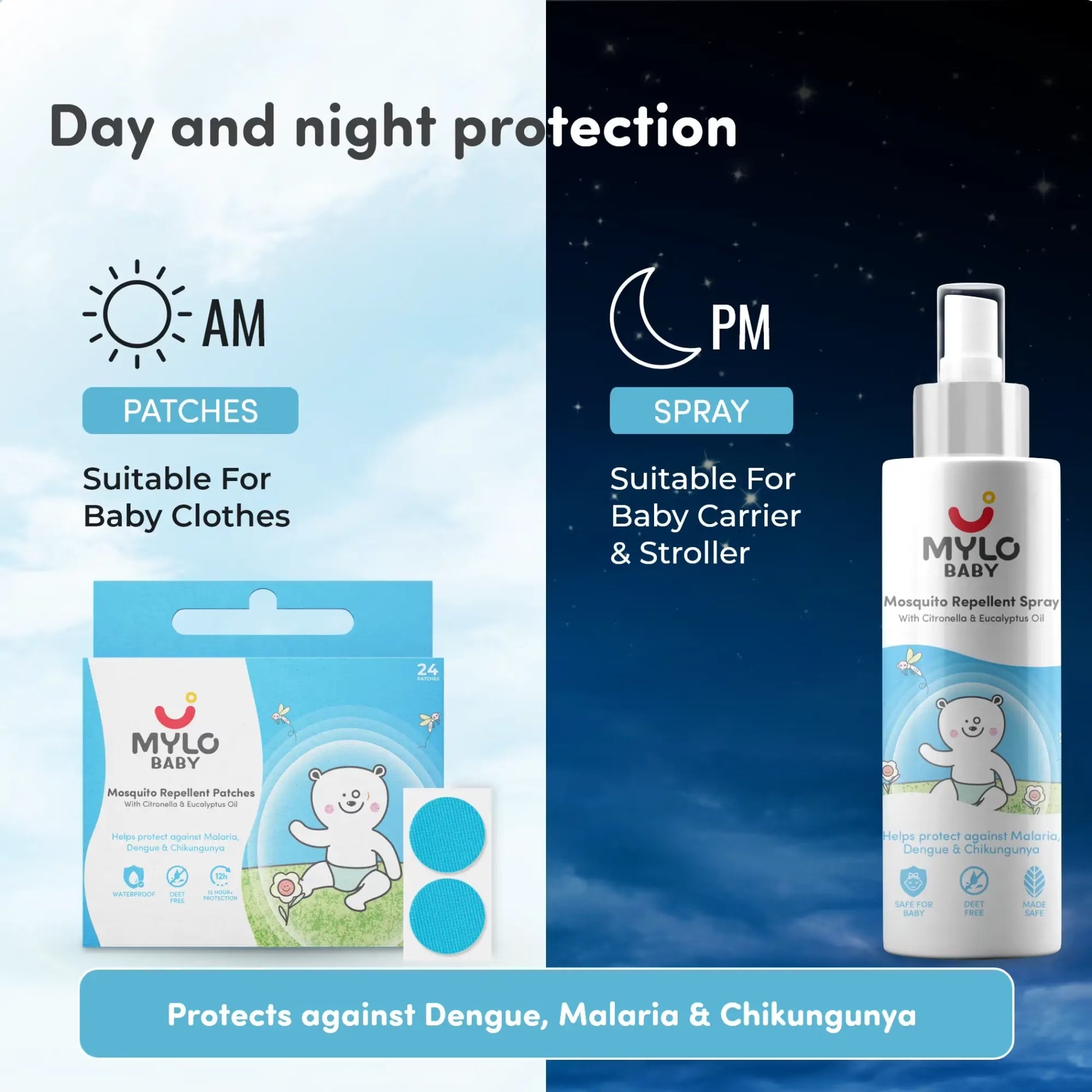 Baby Mosquito Spray (100 ml) & Mosquito Patches for Kids (24 Patches)