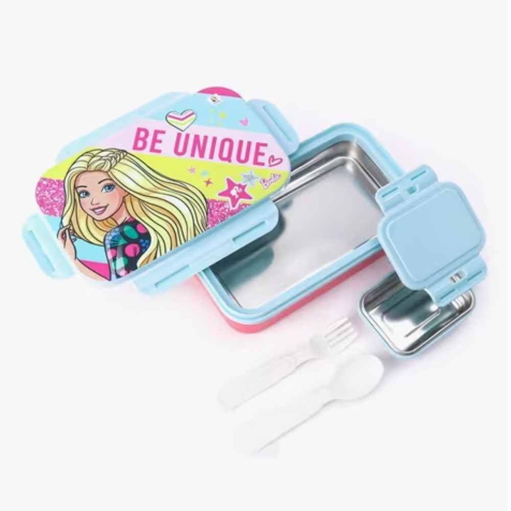 Striders Barbie Kids Lunch Box | “Be Unique” Cute Barbie Design | Durable Plastic Tiffin Box with Easy Open Side Locks