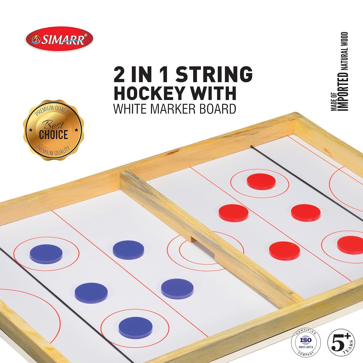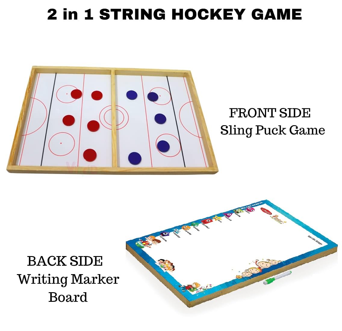 Board Game 2 in 1 String Hockey Game with White Marker Board, Fast Sling Puck Game for Kids and Adults for All Age.
