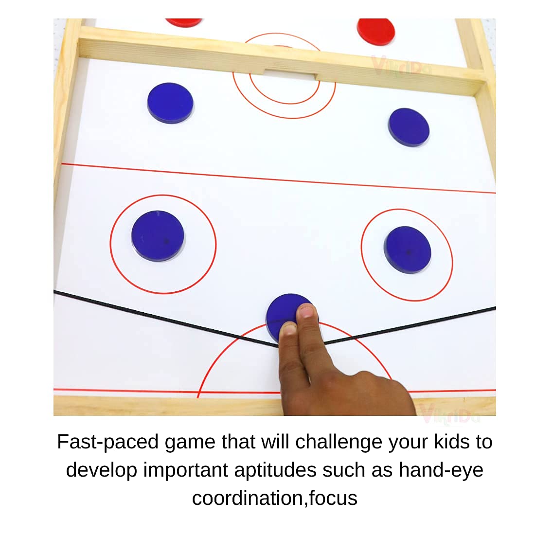 • For both adults and children, this wooden sling hockey game is the ultimate challenge! Start the fun with this distinctive wooden board, which enables everyone to take part in an enjoyable family game that helps the younger players hone their skills and spend quality time together away from electronics.