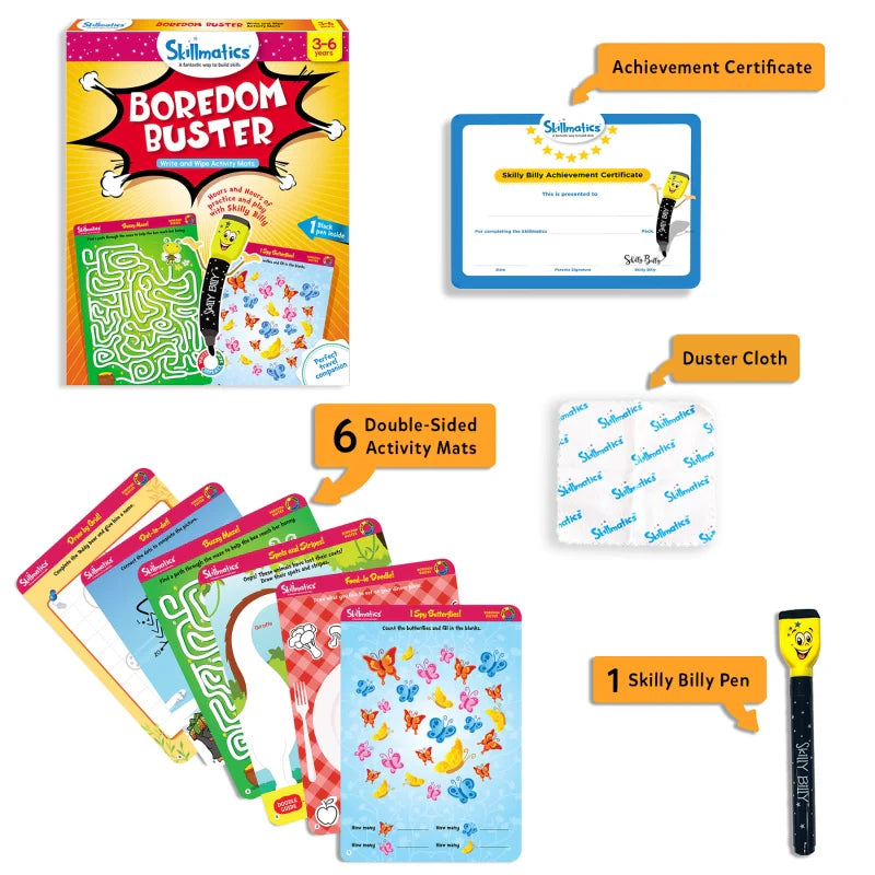 Skillmatics Boredom Buster is the perfect companion to keep little ones occupied. The highly engaging activities are carefully designed to ensure that children practice key concepts while having loads of fun! This holistic pack is perfect to keep children engaged for hours at end!