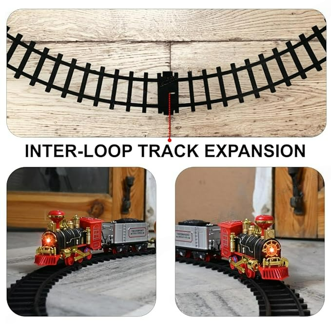 • Vintage Toy Train Set with Tracks. Comes With Realistic Sounds, Flashlight and Smoke Effect as The Train Chugs On The Tracks.