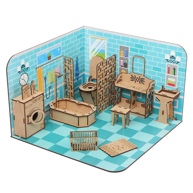 • Most children dream of a doll house of their own. Beautiful DIY dream Bathroom especially designed build & paint feature for young kids, dollhouse size - 30x30x20 cm