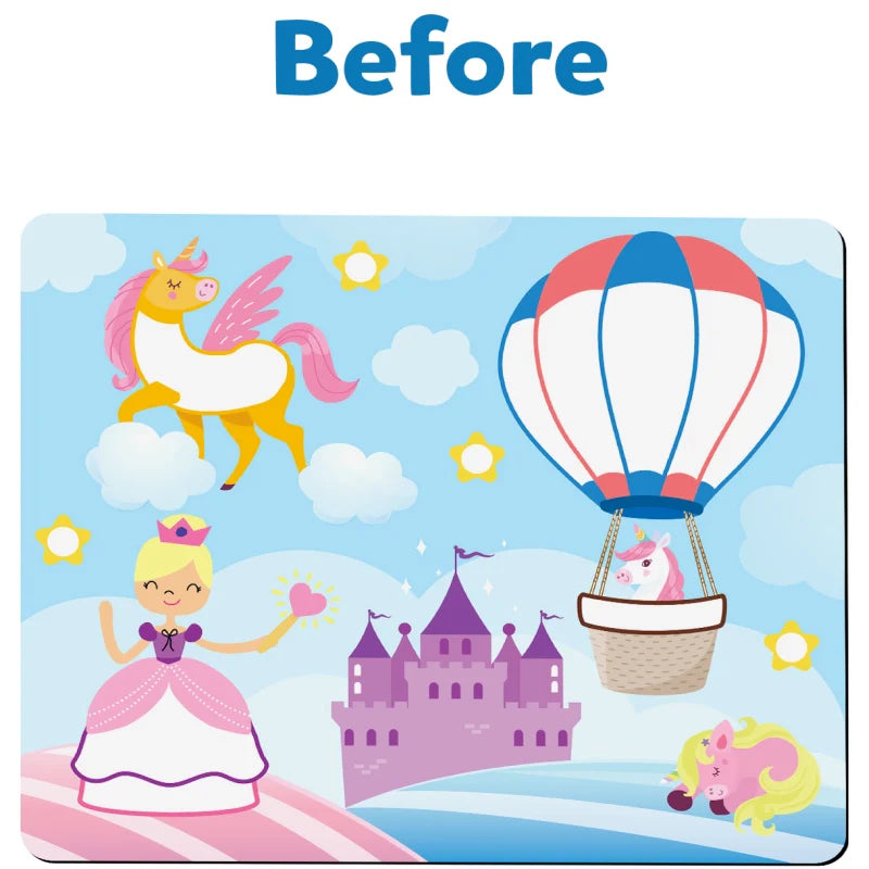 Dot It! is the perfect stickering, no-mess art activity to keep your child engaged at home or on the go! With over 500 stickers, your child will use their fine motor skills and imagination to create 8 magical unicorn and princess-themed pictures.