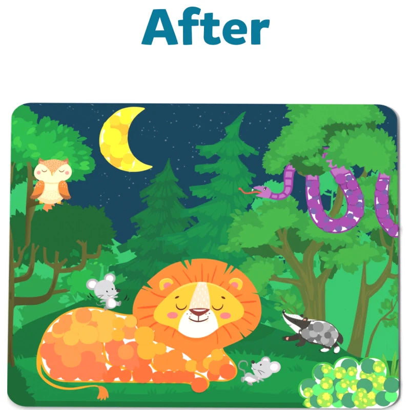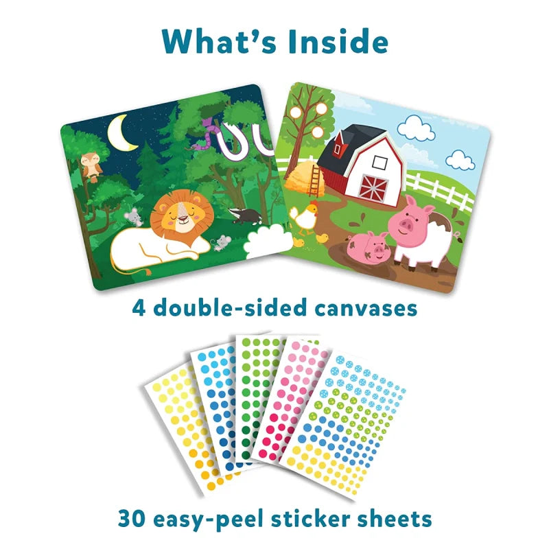 Dot it! is the perfect stickering, no-mess art activity to keep your child engaged at home or on the go! With over 500 stickers, your child is encouraged to use their fine motor skills and imagination to complete 8 animal-themed pictures featuring wild, farm and underwater animals!