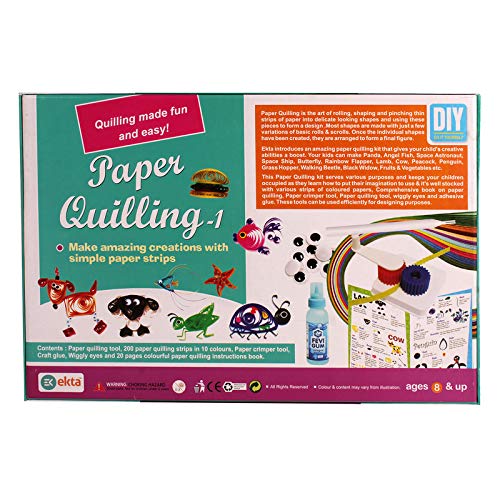 • WHAT’s IN THIS KIT? : Quilling tool, 200 paper strips in 10 different colours, Craft glue, Wiggly eyes, Colorful paper AND quilling instructions book