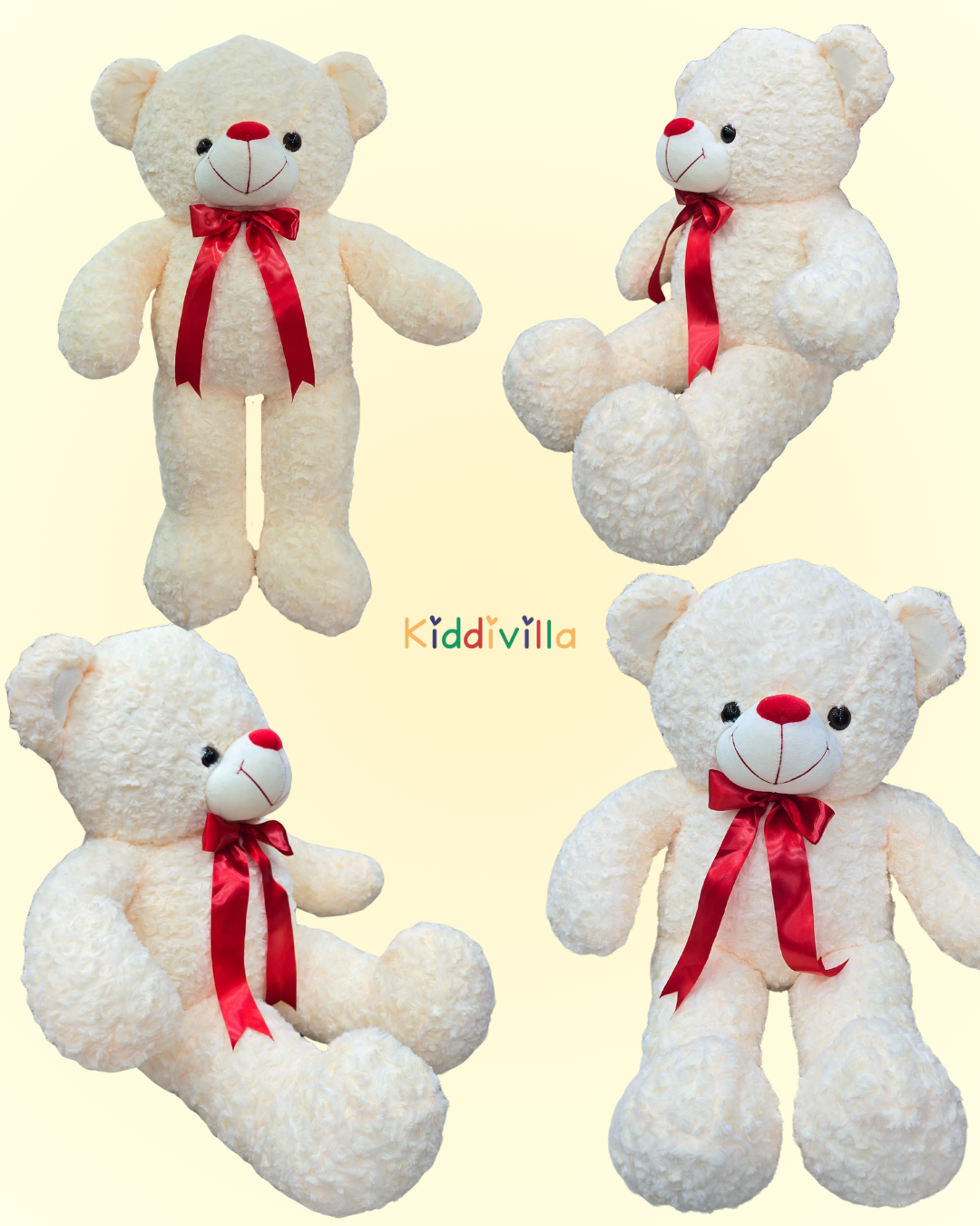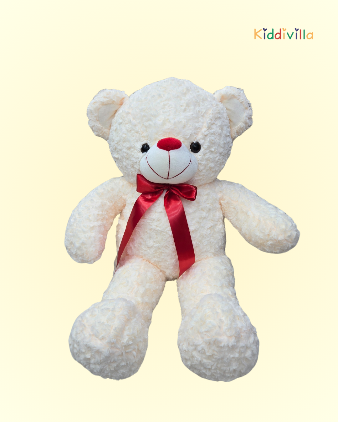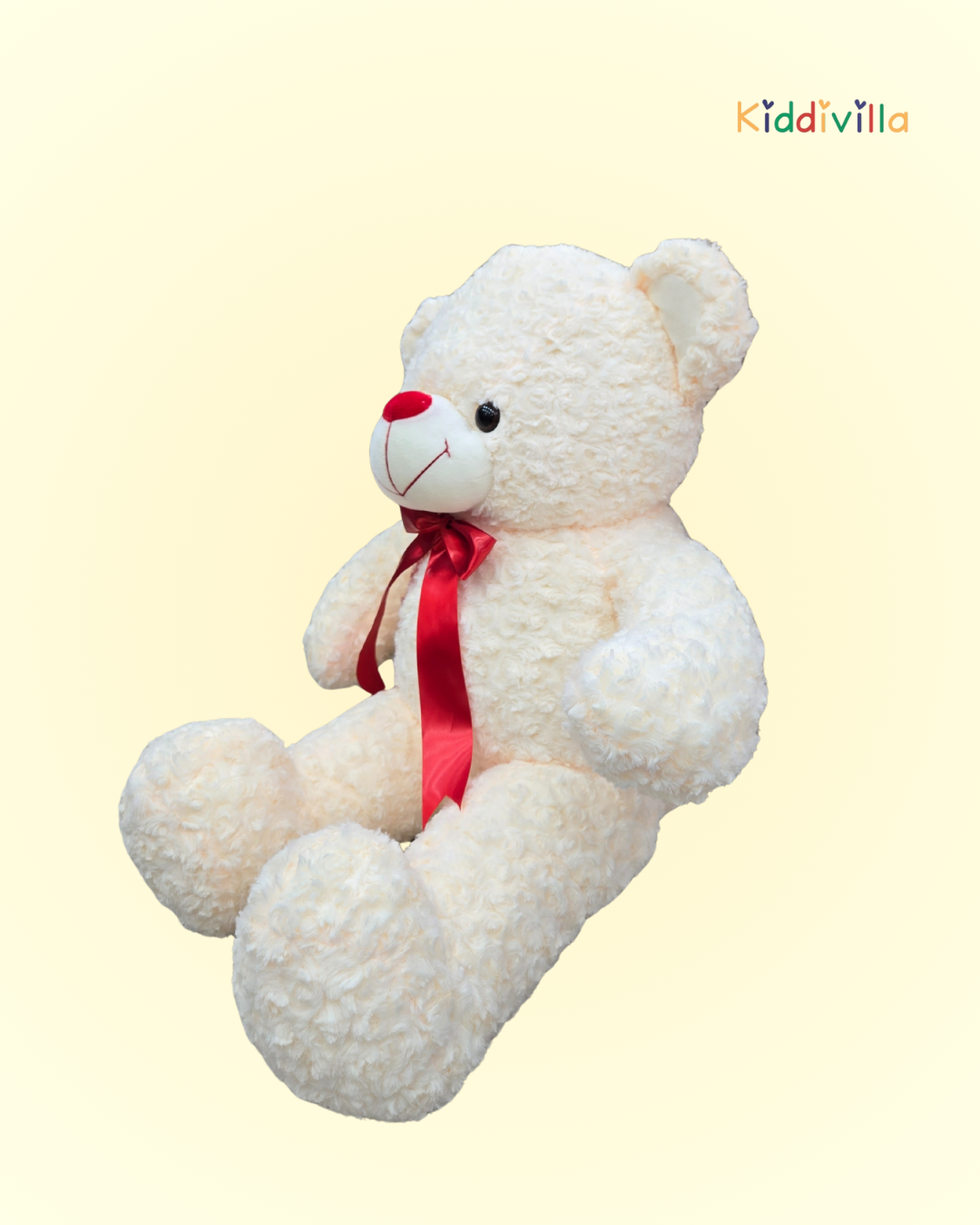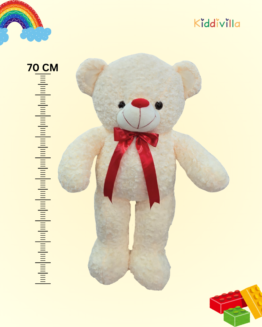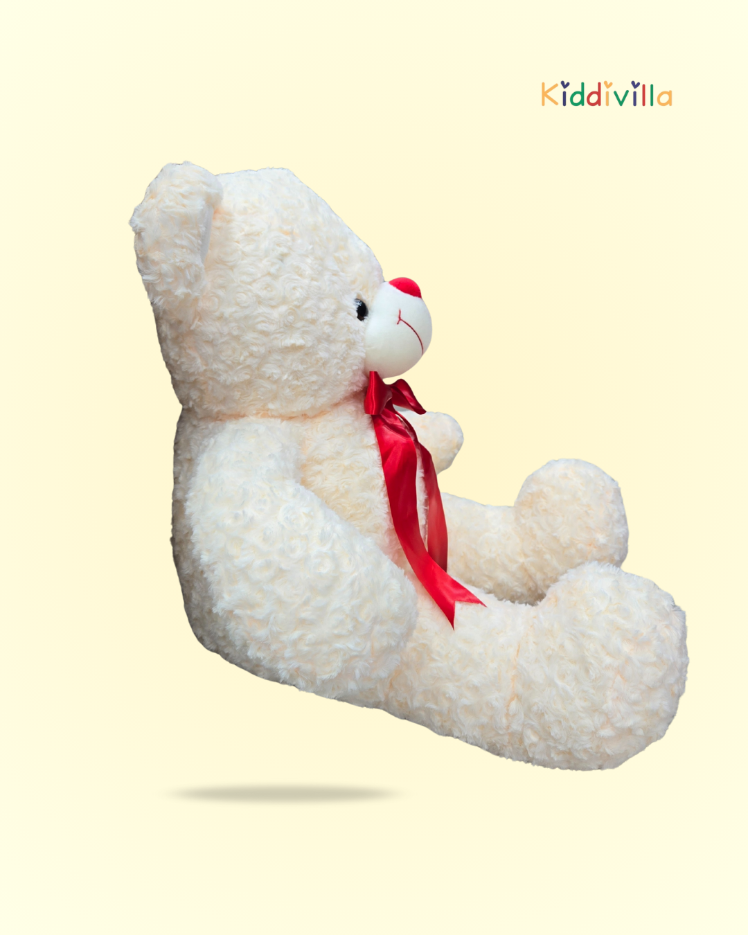Elegant Rose-Texture Cream Teddy Bear with Red Bow – 70 cm