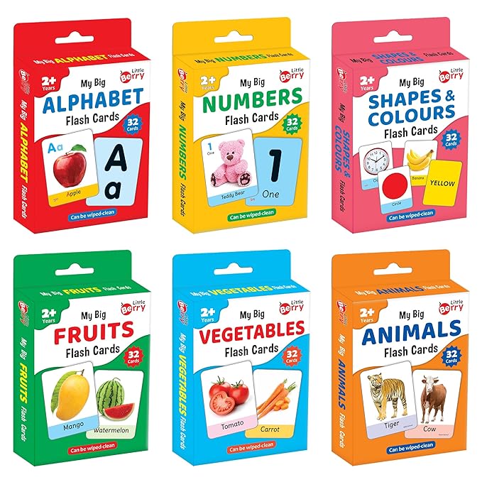 • PROVEN LEARNING TOOL FOR TODDLERS 2 TO 6 YEARS: Little Berry’s flash cards set of 6 teaches important early learning topics: alphabets, numbers, shapes, colours, fruits, vegetables, and animals. It’s a complete learning set to improve memory, concentration, build vocabulary and develop early reading skills.