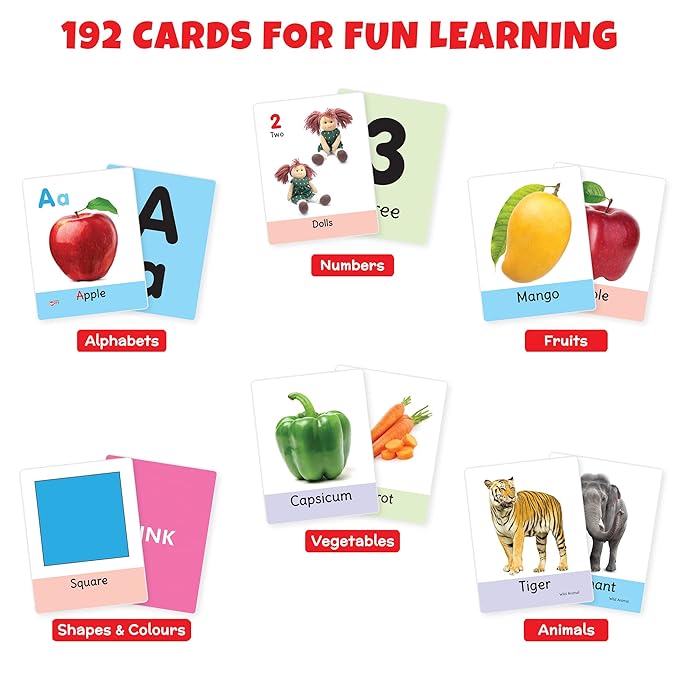 • EDUCATIONAL FUN: These 192 double-sided cards with colourful, realistic pictures make learning feel like play. Highly-researched images relevant to babies' everyday environment and big bold letters make it a perfect educational tool for homeschooling, kindergartens and playschools