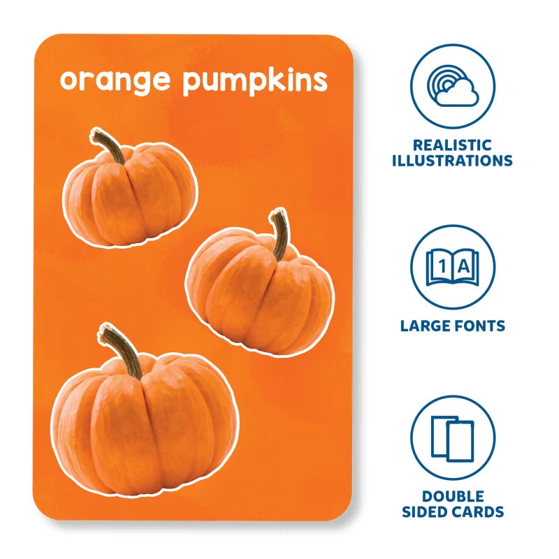 Educational Flash Cards for children, 50 double-sided cards (100 images) with a learning guide & activities included.