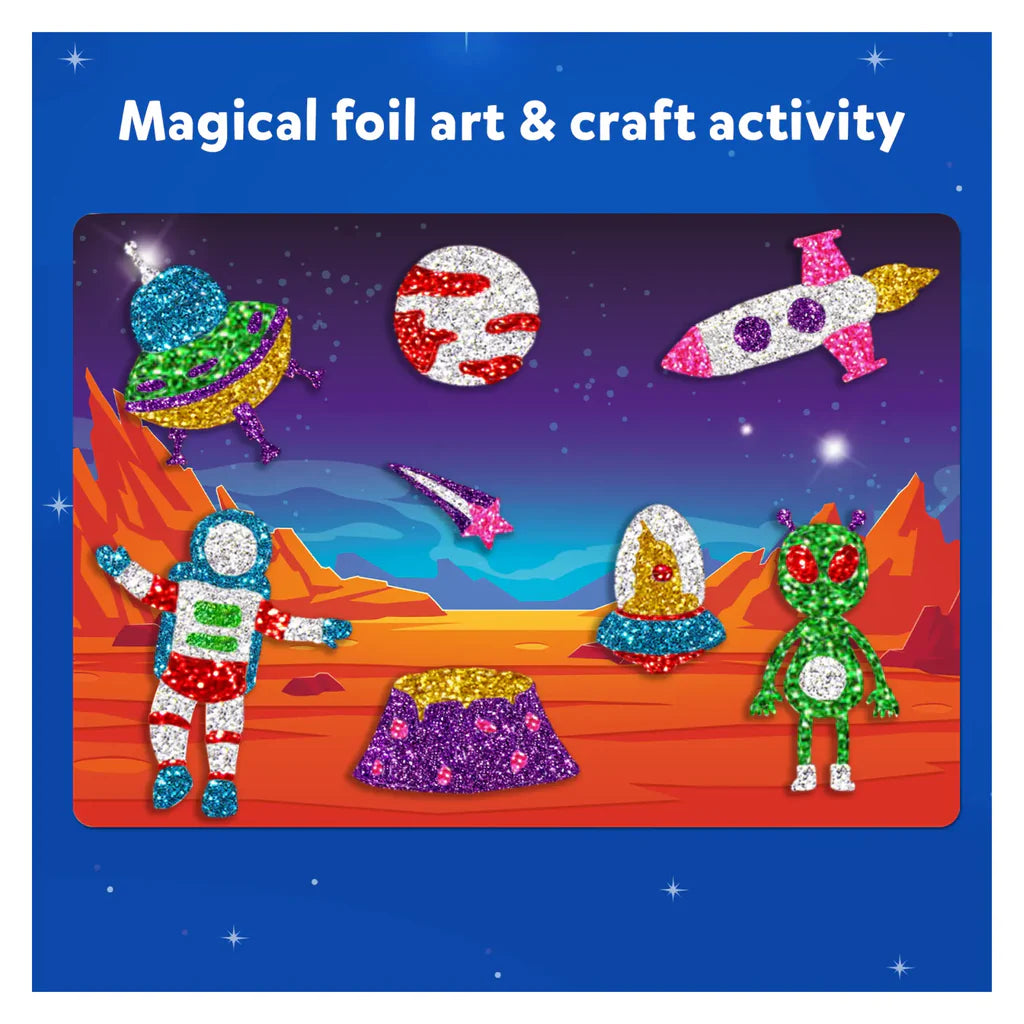 Foil Fun is a magical, mess-free activity to inspire hours of creative fun! Let their imagination soar as they create unique foil pictures with planets, astronauts, shooting stars and more!