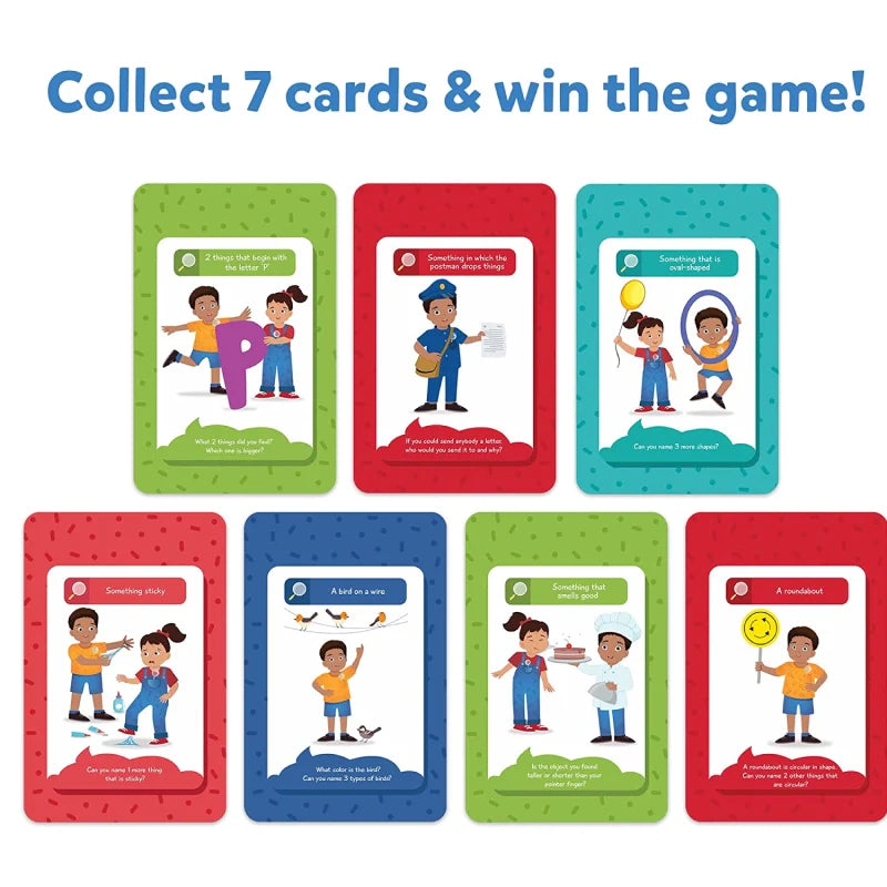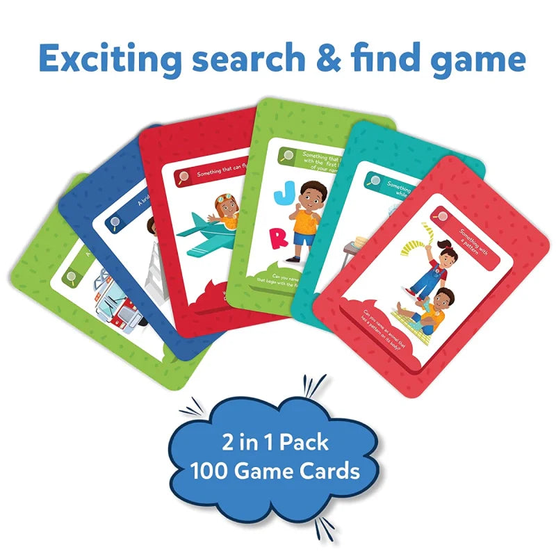 Get ready to play the Smartest Scavenger Hunt! Learn about phonics, numbers, shapes and a whole lot more as you go on the most exciting "Search and Find"! CAN YOU FIND... Something with a pattern? Something smaller than your palm? Shout "FOUND IT!" as soon as you get your hands on the object in question! Play with your friends and try to be the first one to win 7 cards!