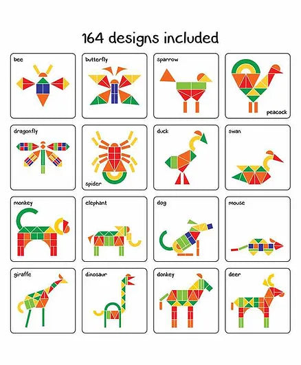 • Set includes magnetic shapes with canvas, a pattern book , a wooden stand