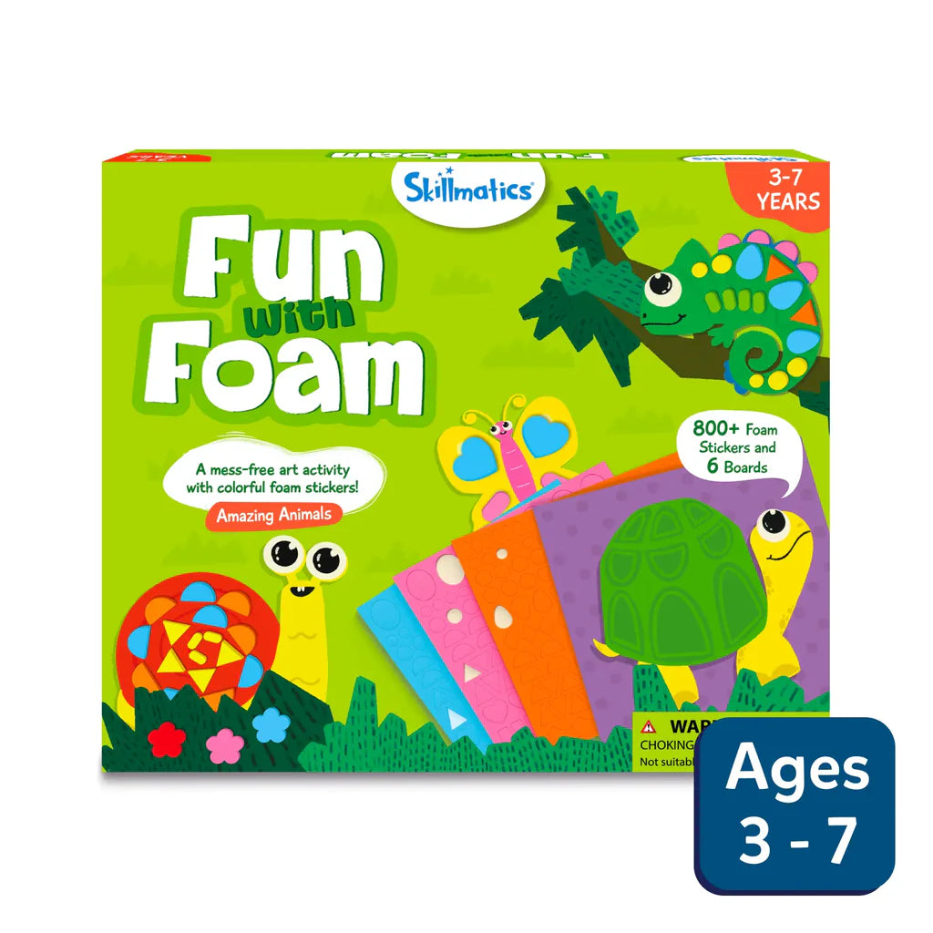 ART ACTIVITY WITH FOAM STICKERS - Fun with Foam is a no-mess, stickering art activity set designed to engage children in independent creative play at home or on the go! With over 800 colourful foam stickers, your child will use their creativity and fine motor skills to decorate bright and cheerful animals!