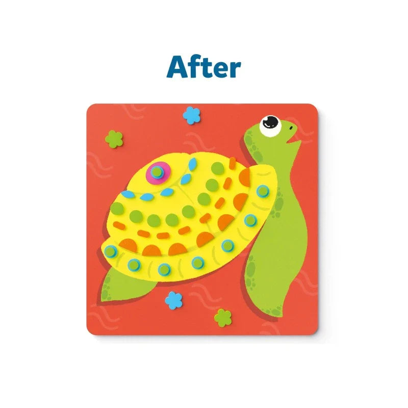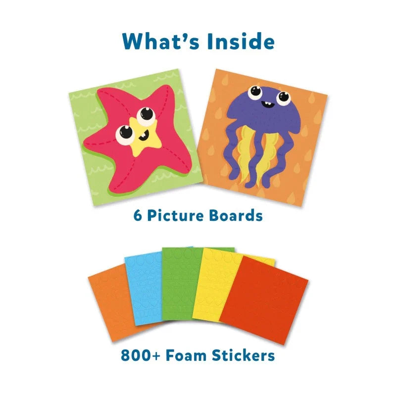 ART ACTIVITY WITH FOAM STICKERS - Fun with Foam is a no-mess, sticker art activity set designed to engage children in independent creative play at home or on the go! With over 800 colourful foam stickers, your child will use their creativity and fine motor skills to decorate bright and cheerful underwater animals!