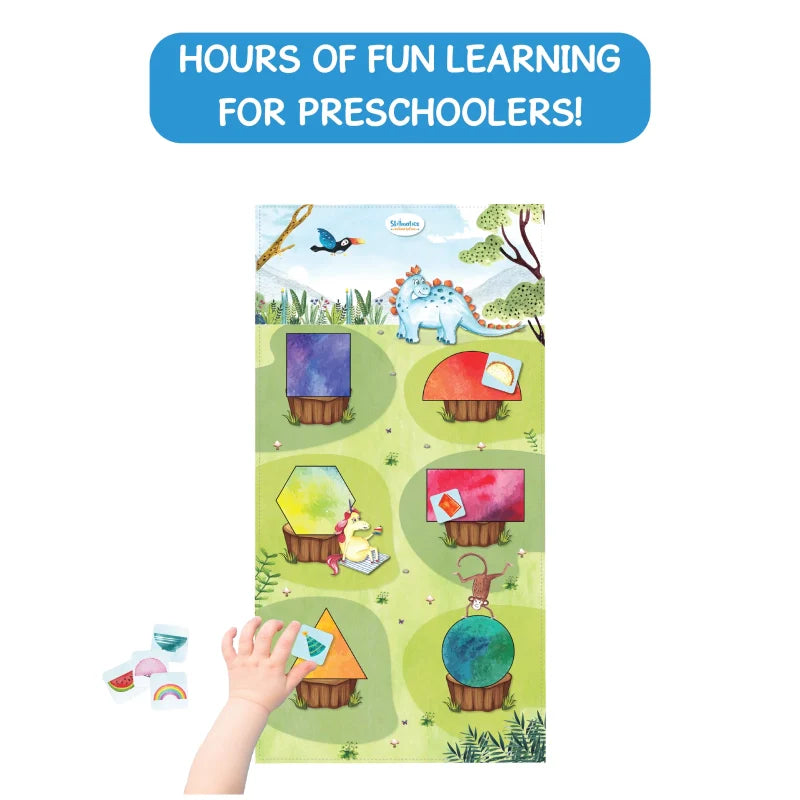 Walk around this colorful garden mat while finding shapes in everyday objects and learn to make logical connections!