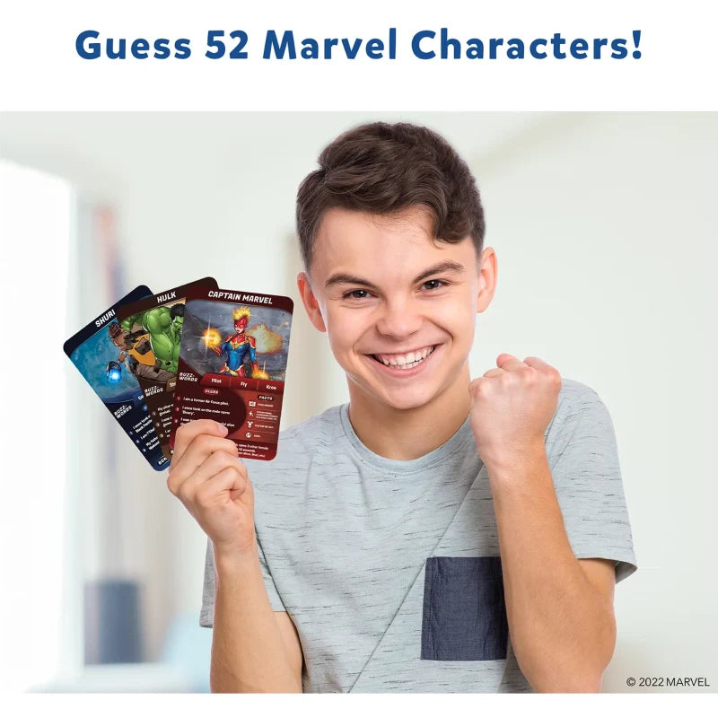 EXCITING CARD GAME OF QUESTIONS - Ask up to 10 questions to guess the Marvel character on the Game Card! Can she fly? Is he a part of the Avengers? Be the first player to win 7 Game Cards!