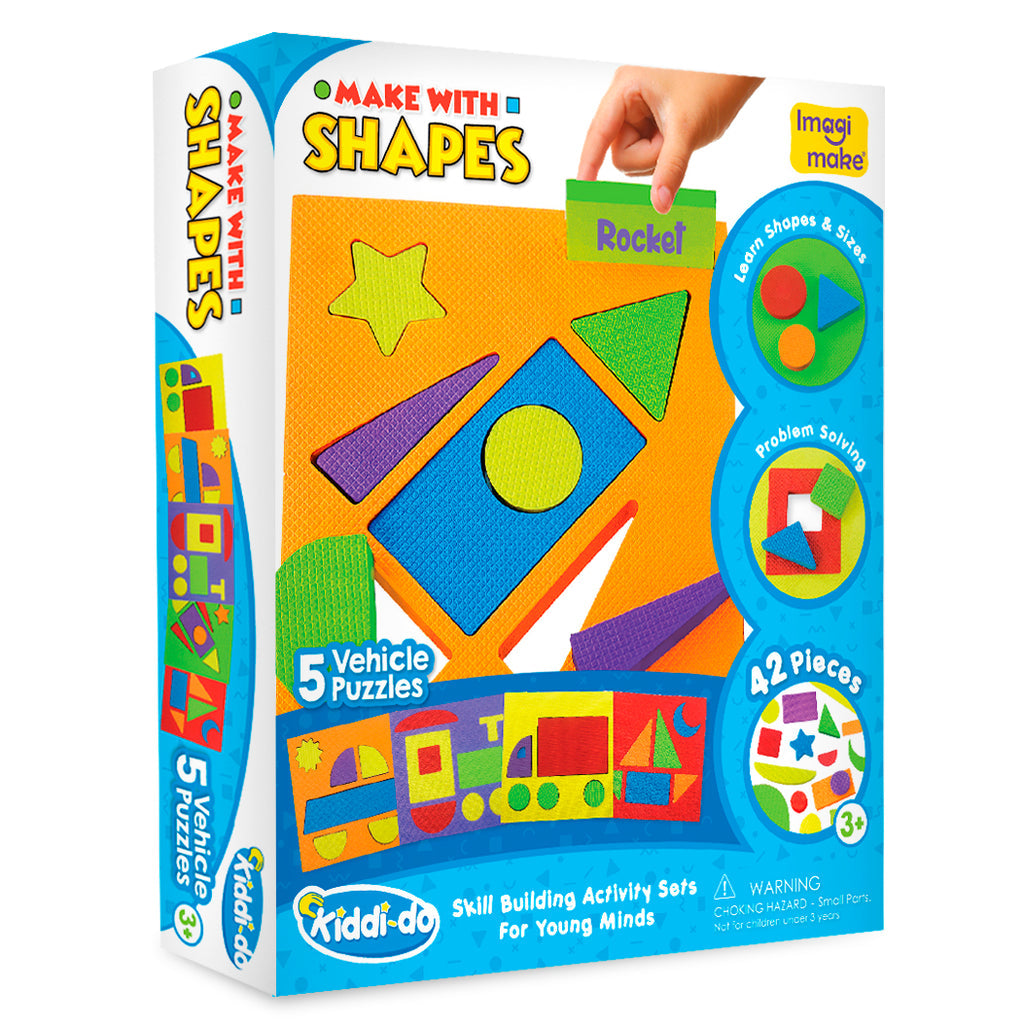 Create fun objects combining simple shapes and match them to the right label. Made of 8mm foam in fun and attractive colours, this is an excellent way to teach young ones about simple shapes and objects.