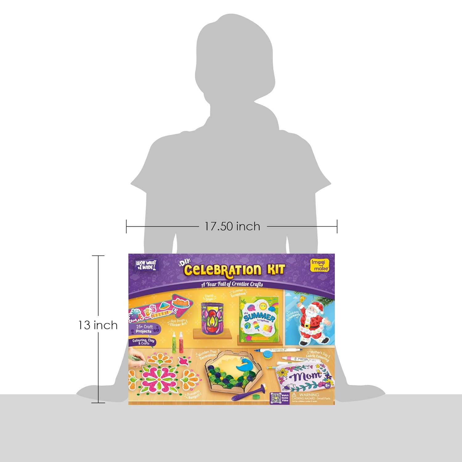 Imagimake Celebration Kit | 25+ Exciting Craft Projects for Kids | 500+ Craft Supplies | Art & Craft DIY Kit for Ages 5 to 12 | Great for Birthdays, School Projects & Travel, Multicolor