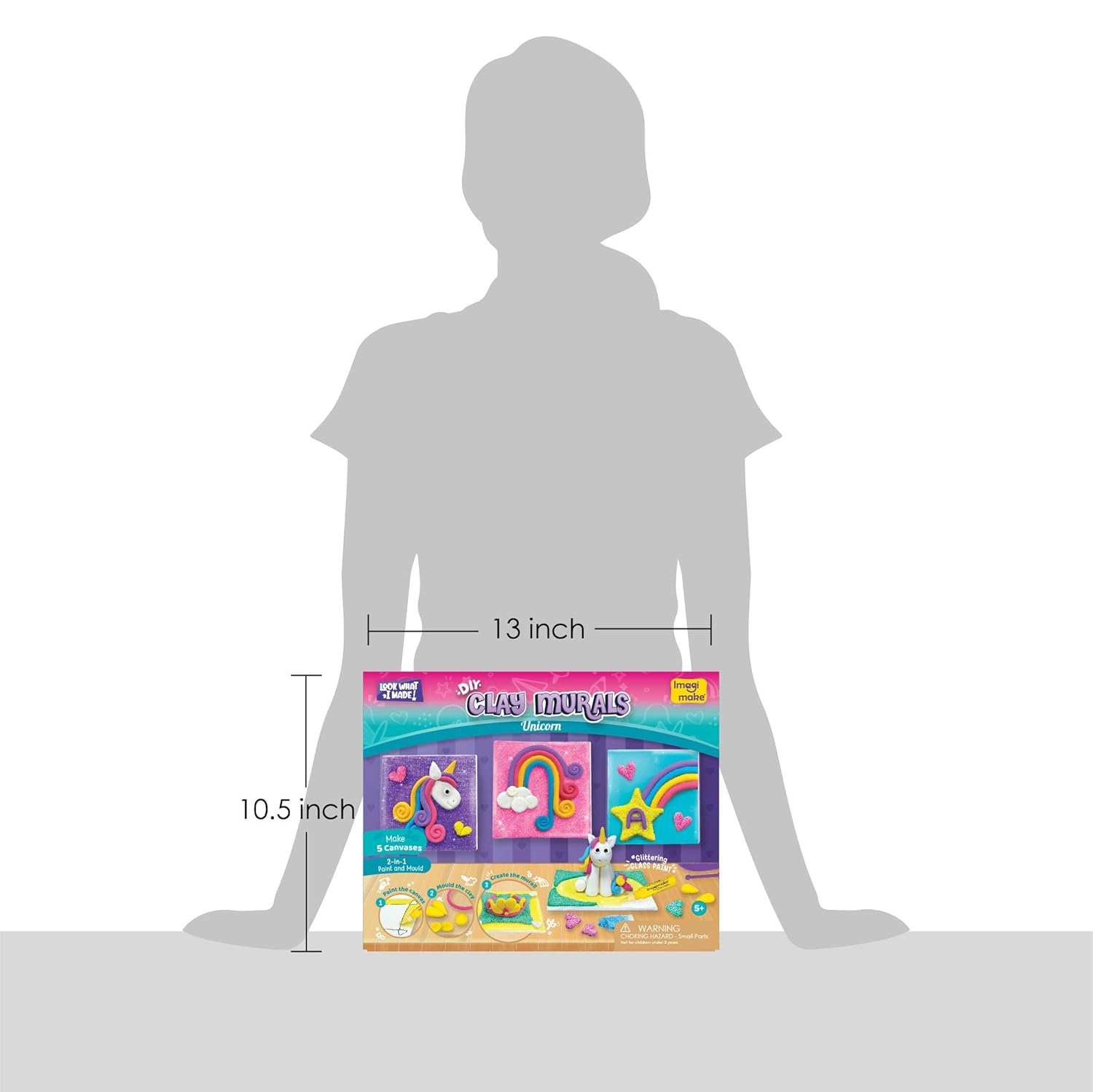 With Clay Murals Unicorn, your child can now create 2D & 3D Clay Models while they enjoy the craft activity! Children love to play with colors & Clay. Being able to create their models of a Unicorn or a Rainbow makes it just so exciting. This modeling clay kit for kids comes with 5 Canvases, 9 Glass Paint Tubes(with 4 Glitter Glass Paints), 12 Foam Clay Pouches(air dry), 6 Super Light Clay Pouches(air dry), Clay Tools, Googly Eyes, Instructions & Templates. First, the child needs to paint the canvas with the help of Glass Paints which are provided in the tubes for easy application. The next step is to mould the Foam & Super Light Clay for kids according to the outline of the canvases and instructions provided in the kit. With these simple steps, the child can create awesome designs & learn the art of sculpting. The child can also use the blank canvas and enjoy the freedom of creativity to make their designs! Please note: Foam & Super Light Clay are AIR Dry Clay materials. Try to use the full pouch as soon as you open it. If not, the kid's clay can be stored in an airtight container for up to 48 hours. Clay Murals is a great indoor activity for kids. It is a great option for party gifts or return gifts as well!!!