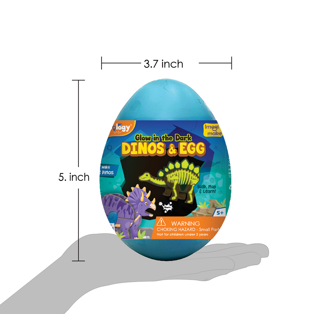5-inch glowing egg, 2 joints, Assembly guide, and 2 fossil puzzles