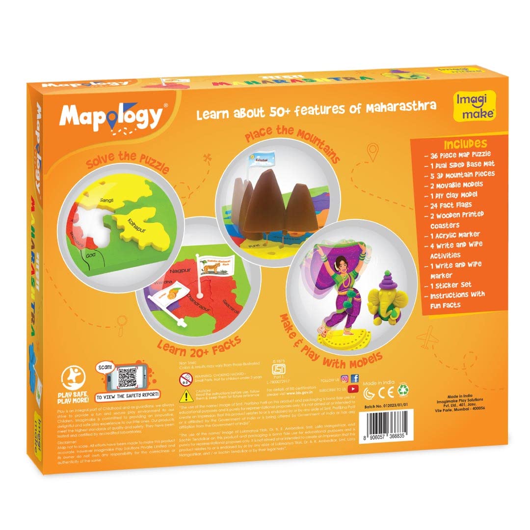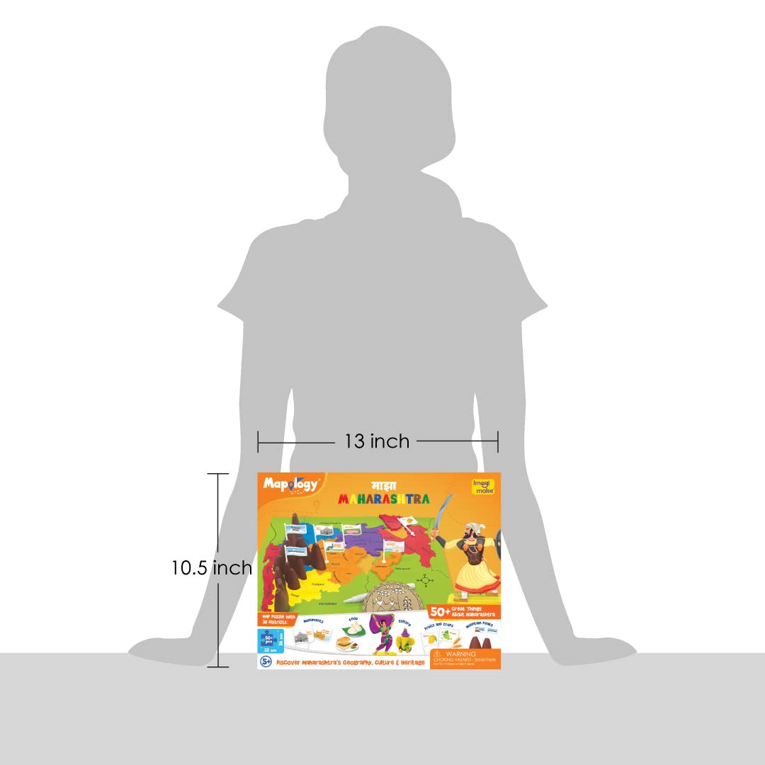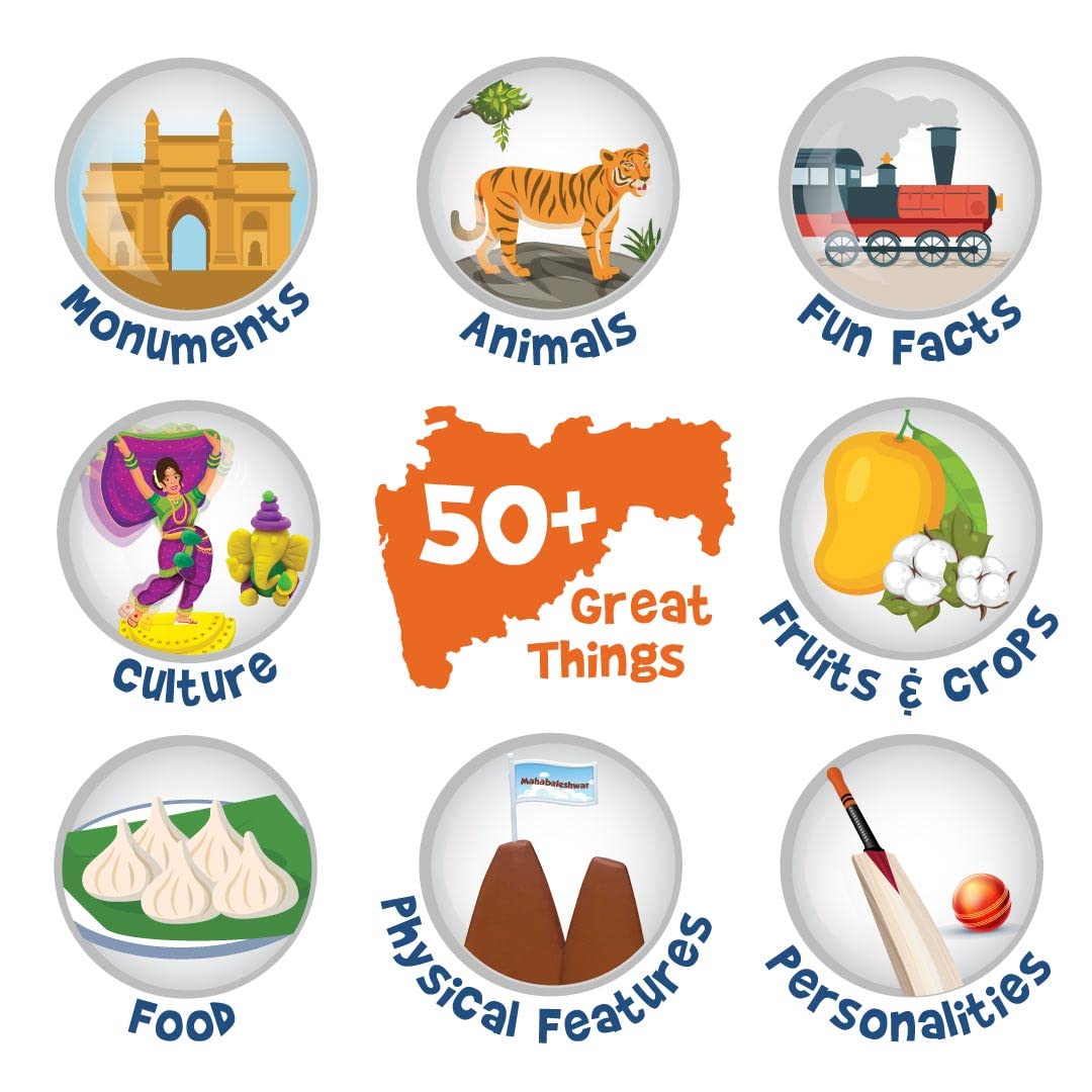 This Maharashtra Map puzzle and activity set allows children to learn as they play and appreciate the geography, heritage, culture and a lot more. Educational toys for kids 5+ years - Each puzzle piece is shaped like the district with an actual-sized mat to help children solve the puzzle. From the tallest peak of Salher to the longest river of the state, from the delicious Ratnagiri Alphonso to the tiger in the Tadoba National park - this product has a treasure trove of facts about Maharashtra
