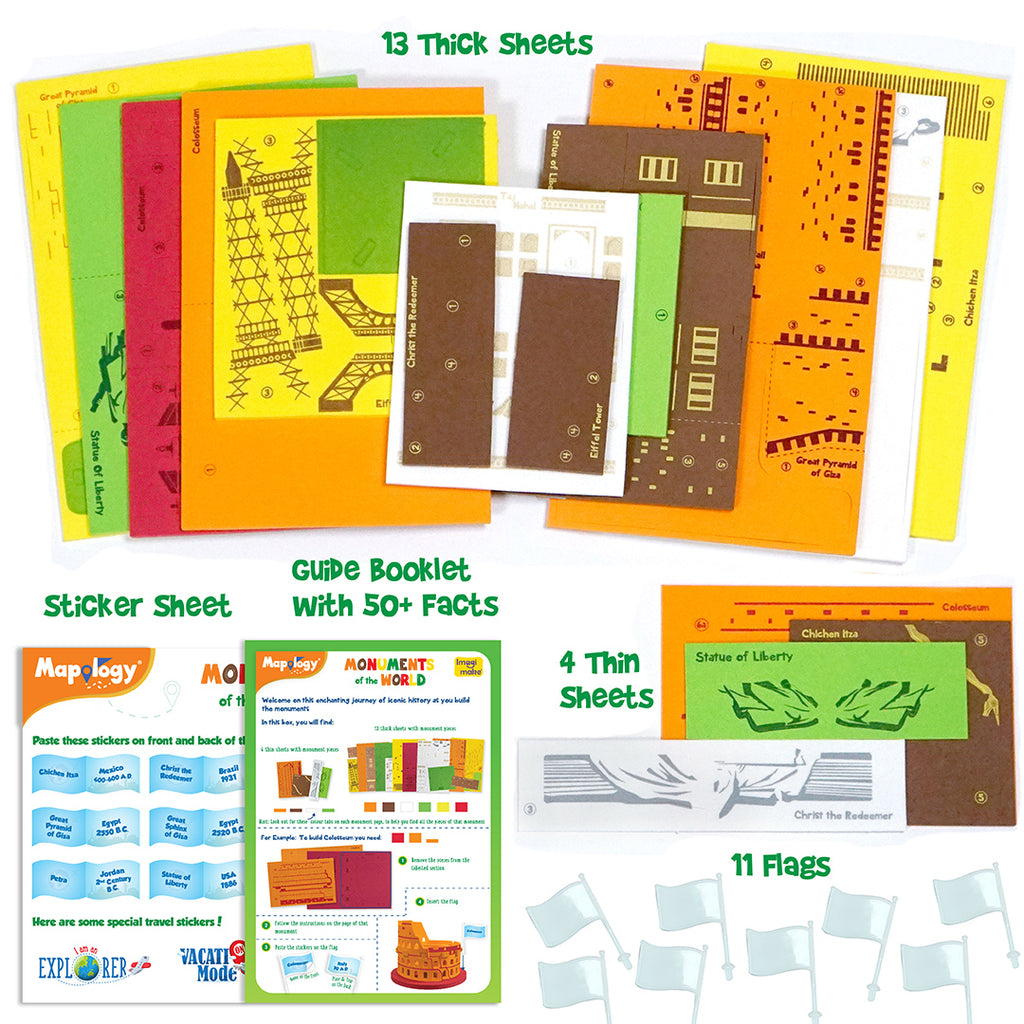 150+ Pieces for Model Making, 11 Flags, 22 Info Stickers, 4 Travel Stickers, Guide Booklet with 50+ fun facts & Instructions