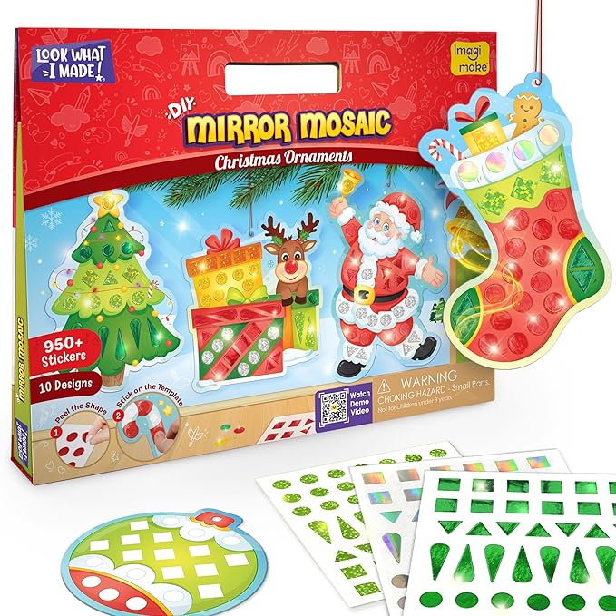 Imagimake Mirror Mosaic : Christmas Ornaments | Mess Free DIY Mosaic Art & Craft Kit | 950+ Foil Sticker | Travel Toys | Christmas Gift for Kids Ages 3,4,5,6,7,8,Multicolor