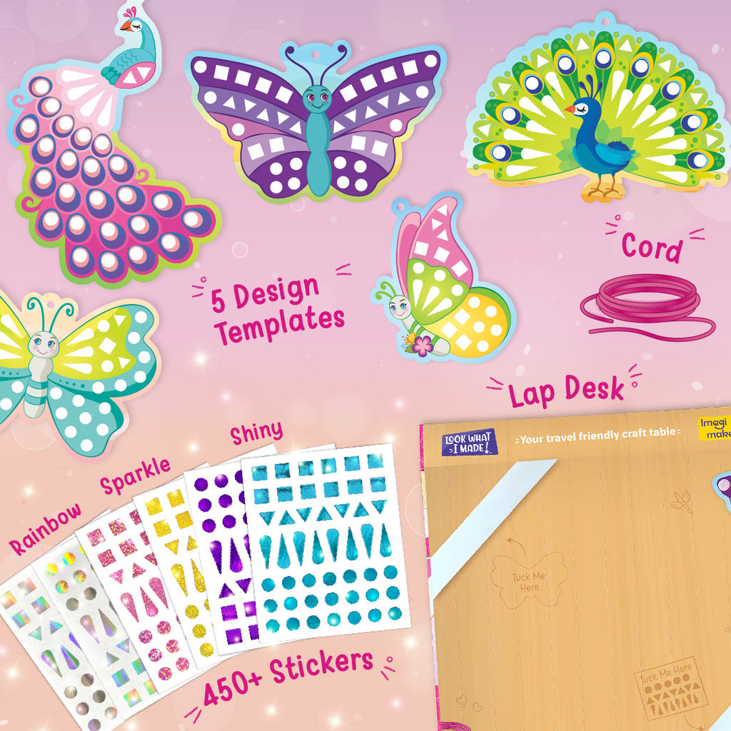 Embark on an enchanting journey of imagination with the Mirror Mosaics Butterfly & Peacock craft kit, designed to captivate your child's creativity. The art and craft kit is a foldable box doubles as a convenient craft table, making it perfect for on-the-go creativity. With dual-sided design templates, your child can explore pre-drawn shapes on one side and indulge in free-form design on the other, offering two creative experiences in one.