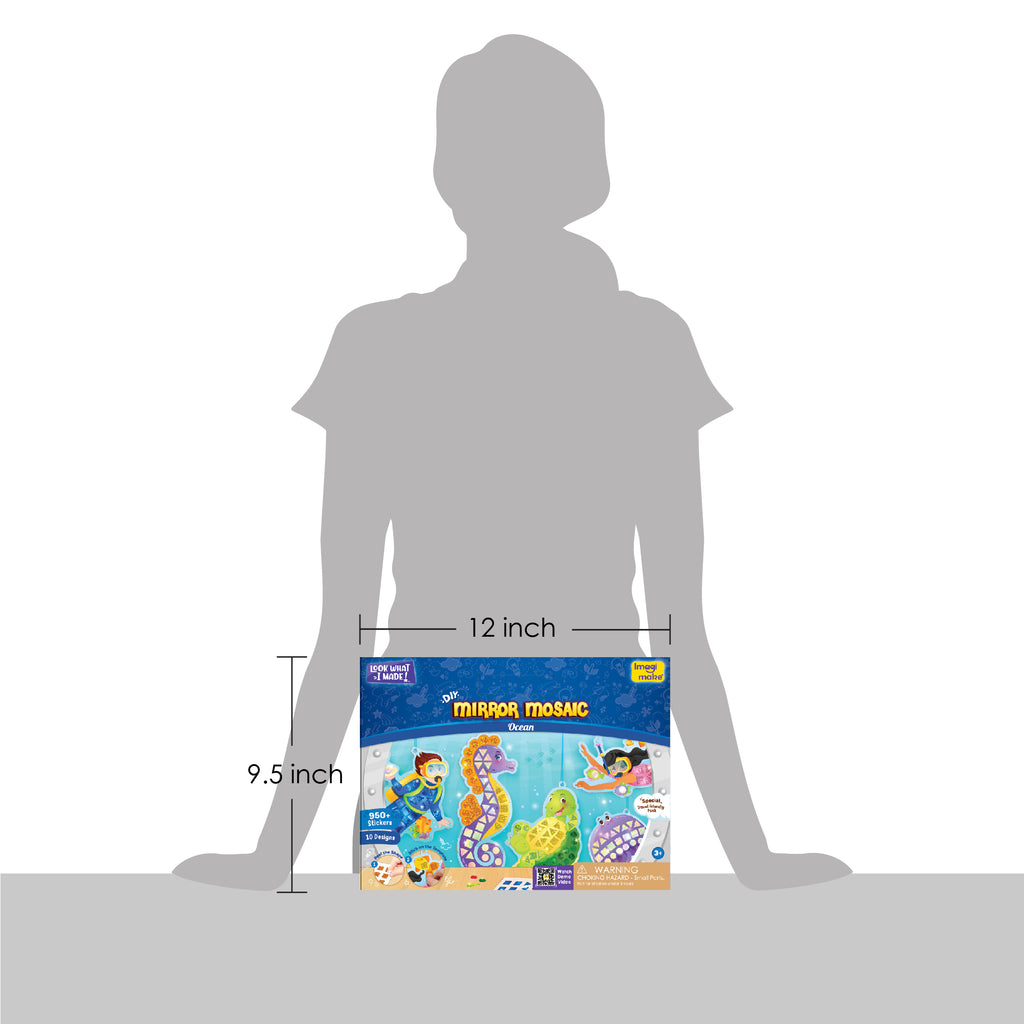 Immerse your child in creativity with the Mirror Mosaic Oceans craft kit by Imagimake. This DIY experience includes 950+ shiny, sparkly, and rainbow foil stickers, 10 design templates, and a cord for hanging creations. Enjoy mess-free crafting with easy-to-peel stickers and add a touch of magic with holographic effects. The travel-friendly kit fosters skill development and creativity, making it an ideal and thoughtful gift for imaginative boys. Proudly designed and made in India, Imagimake ensures top-notch quality for endless crafting fun.
