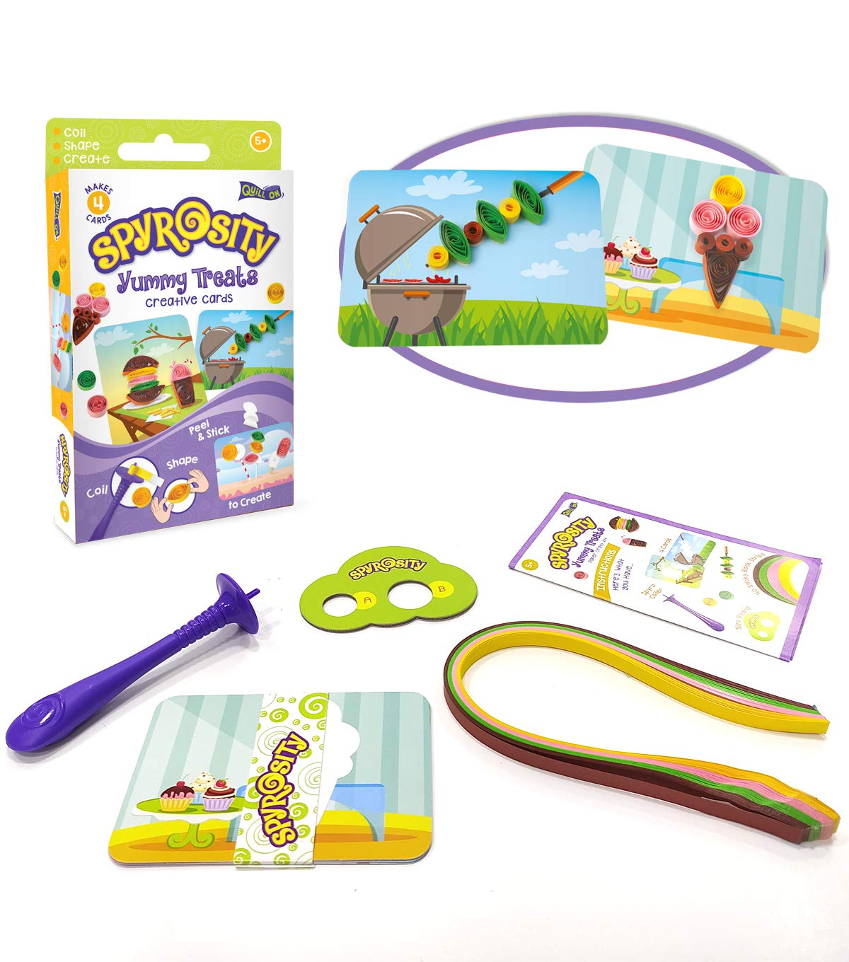4 Creative Cards 40 Sticky Back Quilling strips 1 Spyro Coiler (Manual Tool) Googly Eyes