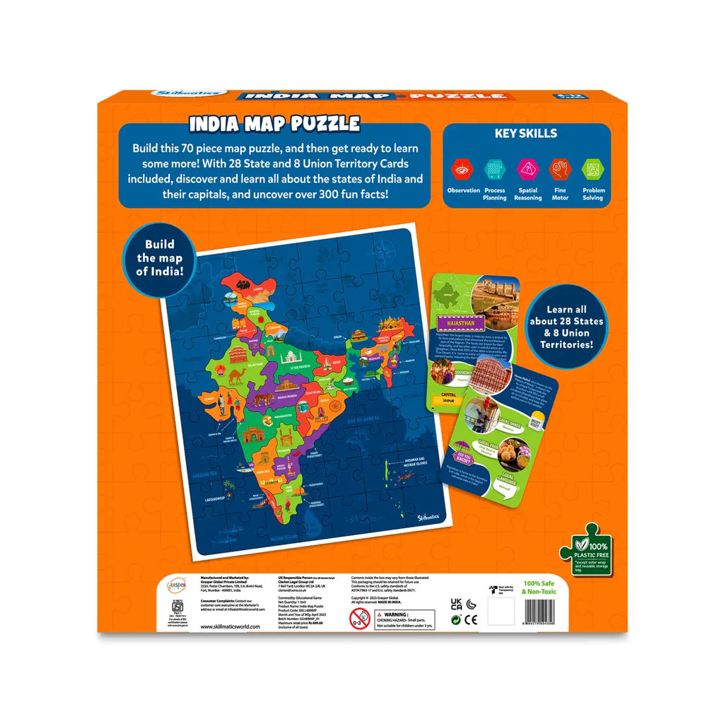 India Map Puzzle is an educational puzzle and game designed for ages 6-12 that combines the fun of solving puzzles with the excitement of exploring India’s various regions. With 70 high-quality puzzle pieces, this Floor Puzzle Game allows children to assemble a detailed map of India, with all the states and Union territories that are colour-coded for easy mapping.