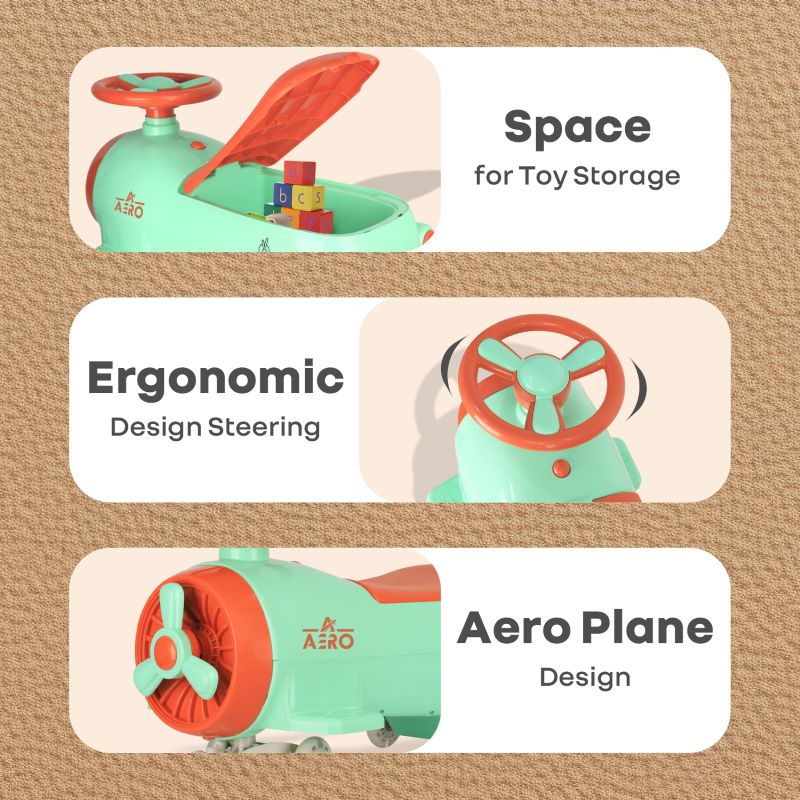 R for Rabbit - Iya Iya Aero swing car Aeroplane design ride on with storage space and magic steering with automated wheels
