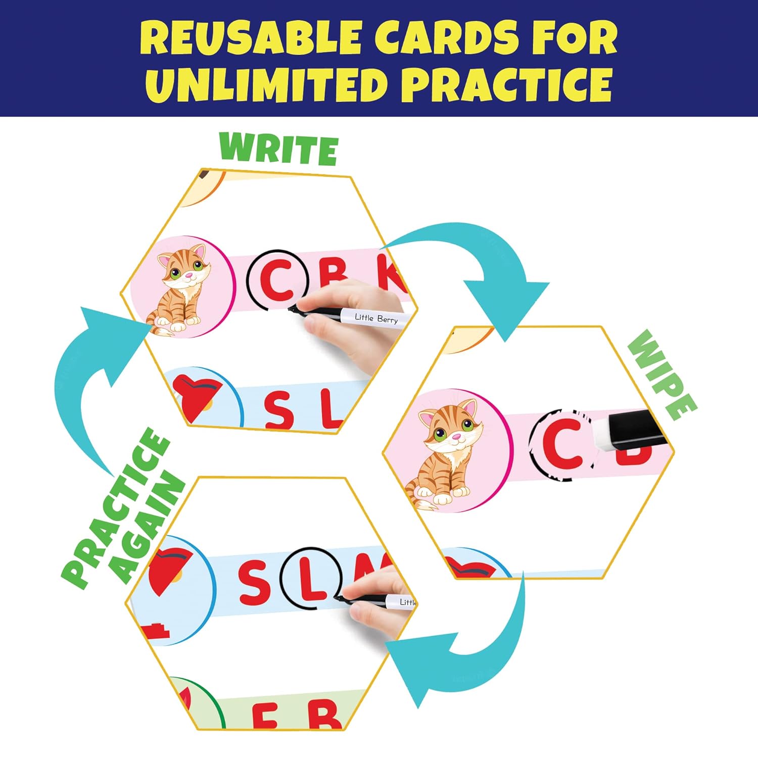 • JUMBO SIZE & REUSABLE: Little Berry’s academic-based learning cards are reusable – WRITE, WIPE and REPEAT for unlimited practice. Each card measures a huge 7.25” x 4.6”, providing ample space and making it the ideal size for kids to move their hands freely.