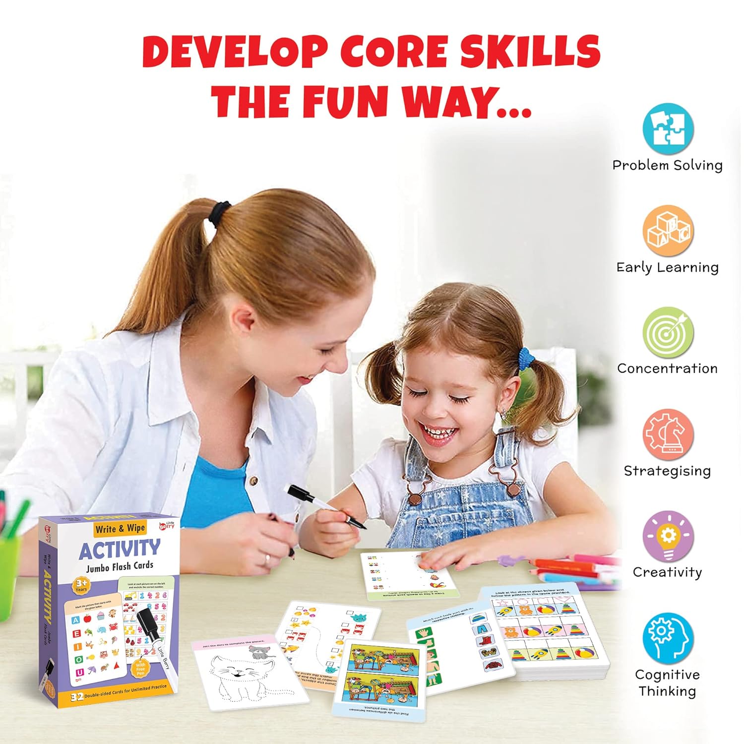 Jumbo Write and Wipe Flash Cards: Activity | 64 Brain-Boosting Activities for Toddlers | 32 Reusable Double-Sided Cards with Marker Pen | Gifts, Travel Toy & Preschool Learning for Age 3+