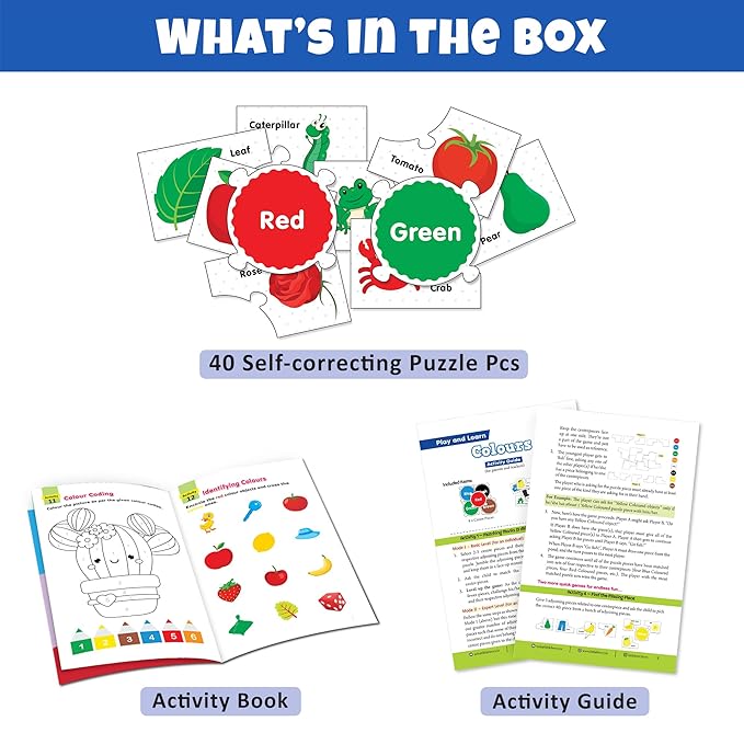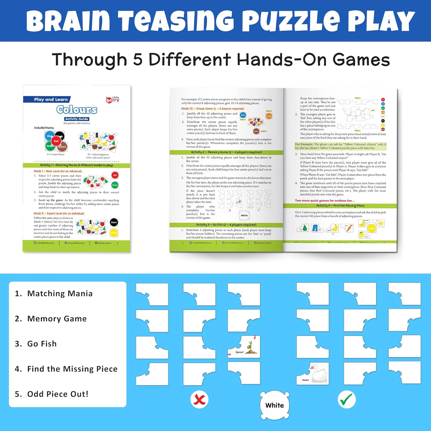 • 5 DIFFERENT PUZZLE GAMES: Each set comes with an activity guide to play memory games, sorting and classification activities, and matching games to learn different Colours. These fun and highly engaging puzzle games are sure to keep your kid busy for hours! Best part – games can be played individually as well as in teams to double the fun.