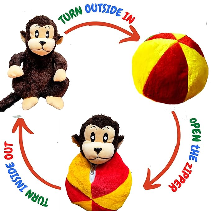 • ⭐ This Reversible Monkey Soft Toy is a Unique Made in India Soft Toy that is perfect for Gifting, Kids are super happy after seeing ball converted into monkey.