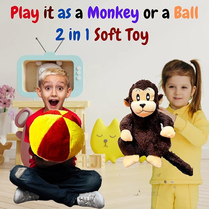 Kiddivilla 2 in 1 Convertible Monkey Ball Soft Toy Multicolor | Unique Soft Toys for Baby Boy Girl Kids Size 15Inches/38cm