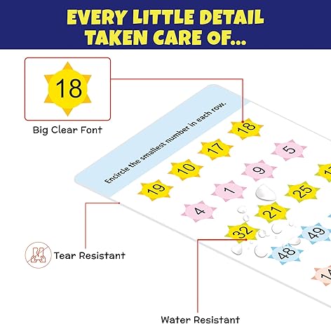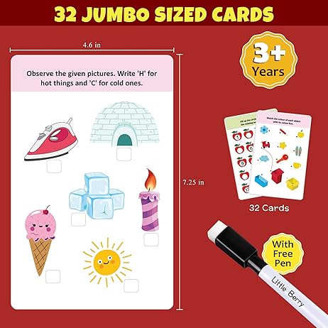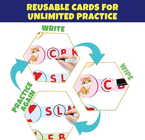 • JUMBO SIZE & REUSABLE: Little Berry’s academic-based learning cards are reusable – WRITE, WIPE and REPEAT for unlimited practice. Each card measures a huge 7.25” x 4.6”, providing ample space and making it the ideal size for kids to move their hands freely.