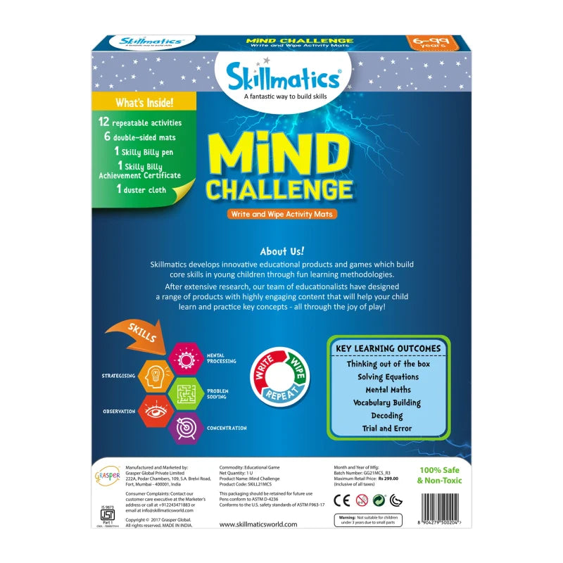 Skillmatics Mind Challenge is a fantastic way to build logic and problem-solving skills! Suitable for all ages, this product is filled with super fun activities which will test your mind and engage you for hours at end! A great travel companion, this product promises hours of fun for friends and family!