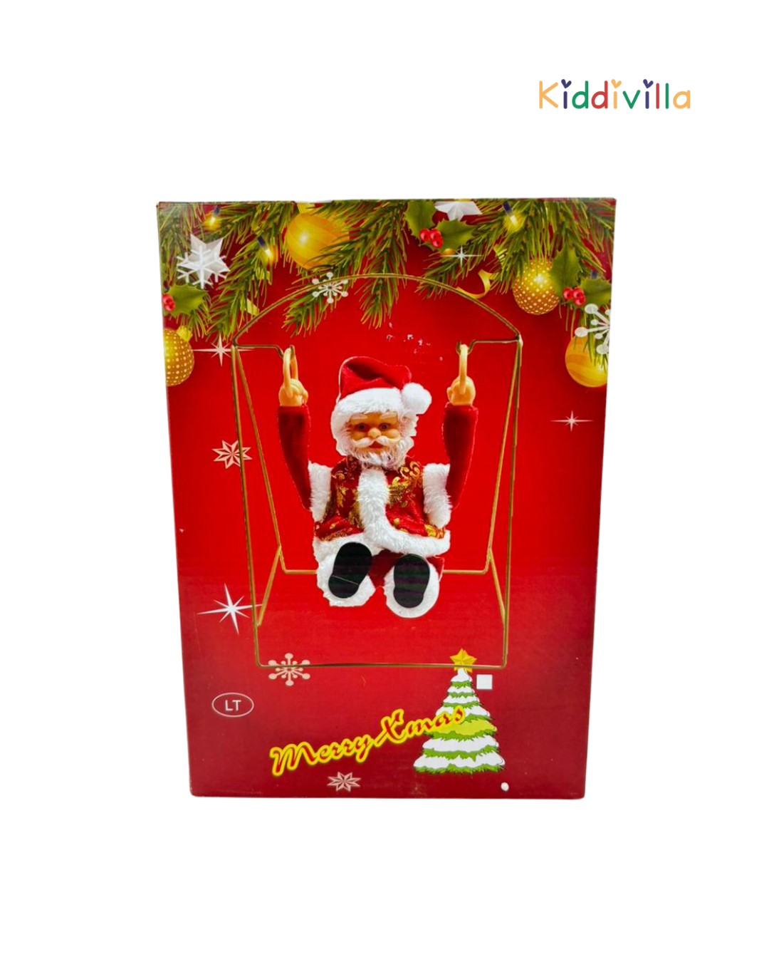 • Features a cheerful Santa Claus doll on a sturdy swing frame, perfect for festive decoration and playtime.