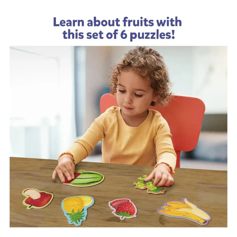 Mmmmm, delicious! Learn about fruits with this colorful set of 6 puzzles. Each puzzle is a unique color to help children easily separate the pieces and build the puzzles. This puzzle set is just perfect for beginners starting to explore the world of puzzles!