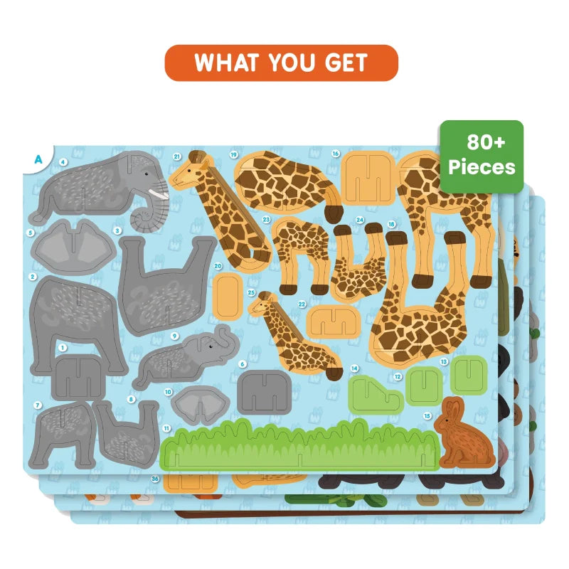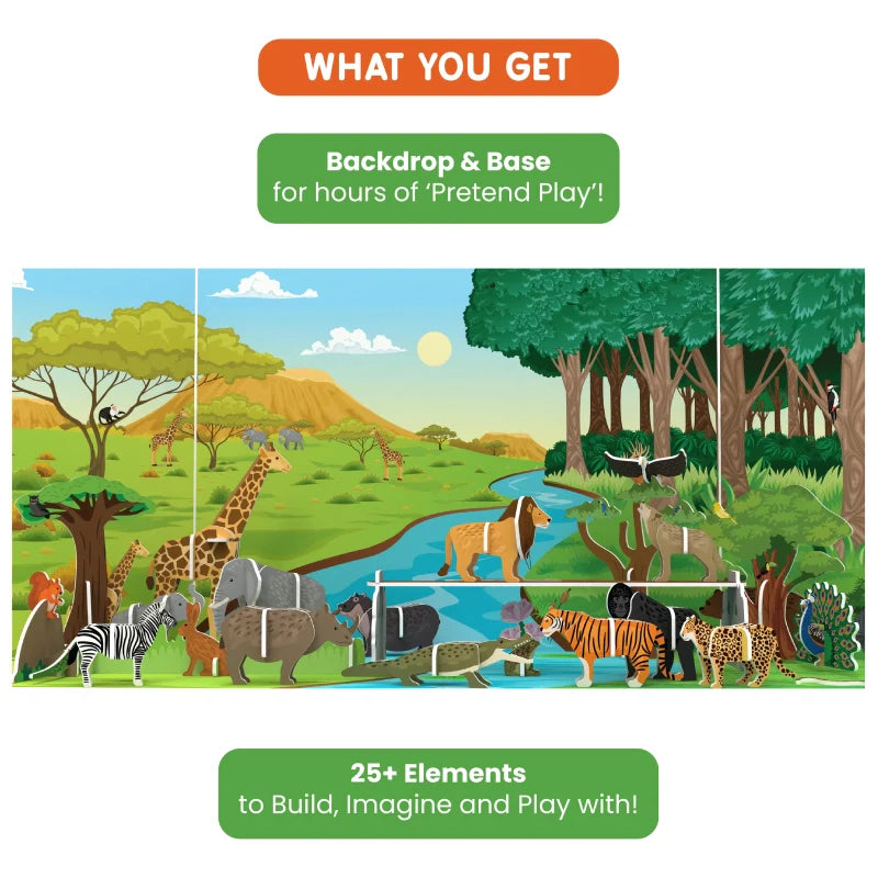 Build a Plastic-Free World of Amazing Animals consisting of 80+ elements to Build, Learn and Play with!. This product encourages imaginative thinking and enables children to experience the joy of creating their own ‘Pretend Play’!