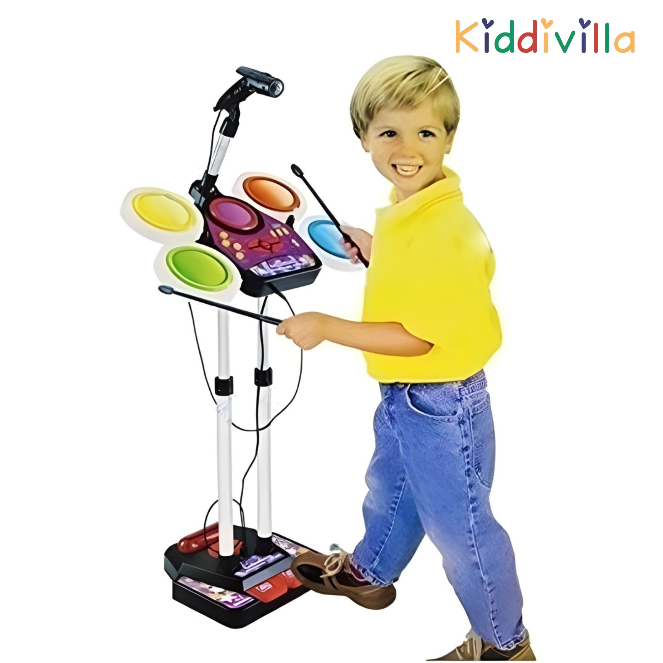 Unleash your child's inner rock star with this amazing musical electronic drum beat toy set! Packed with exciting features, it's the perfect toy to keep kids entertained for hours. The set includes a microphone, allowing little ones to sing along as they drum, and a pedal mechanism that adds an authentic drumming experience. The colourful light effects sync with the beat, creating a mesmerising display. With an MP3 plug-in feature, kids can jam to their favourite tunes. The loud and clear sound quality ensures their performance is truly amplified. This toy encourages creativity, hand-eye coordination, and musical expression, making it an excellent choice for parents seeking engaging and educational playtime. Get ready to witness your child's musical talents shine!